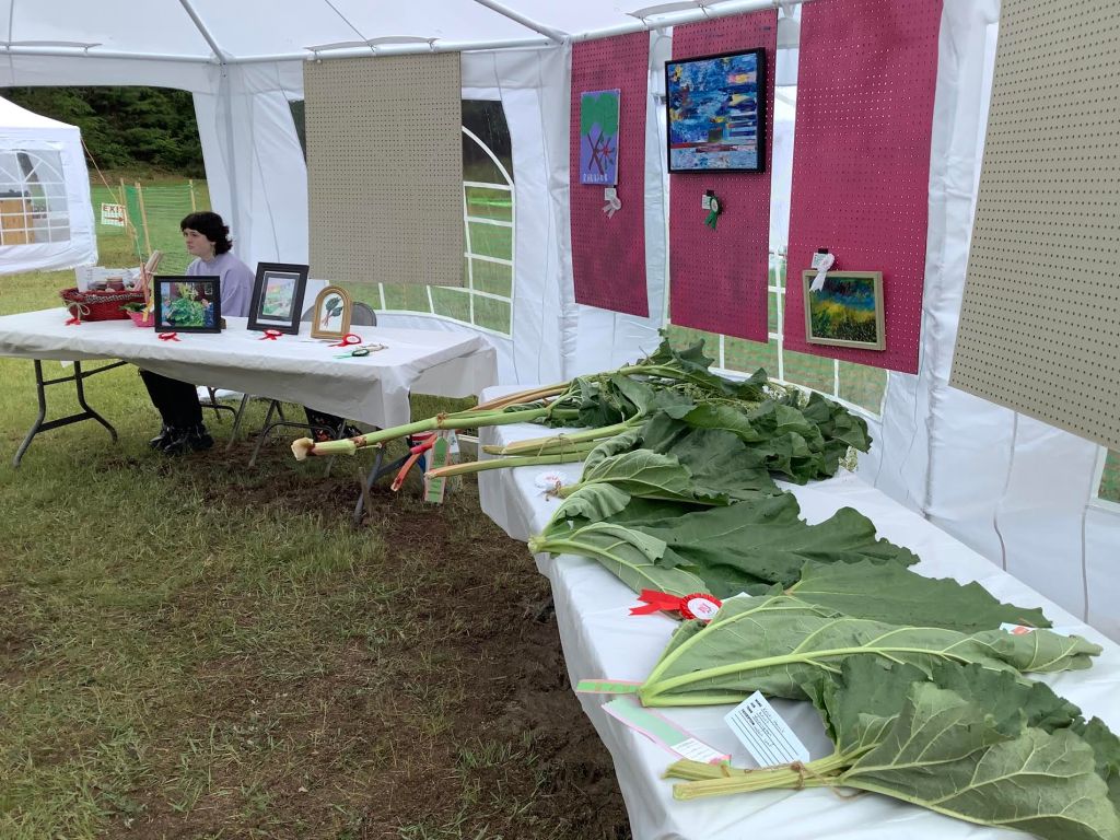 Saturday was cool and happily rain-free. The contest tent was full of long stalks and wide leaves, along with art work and flower arrangements.